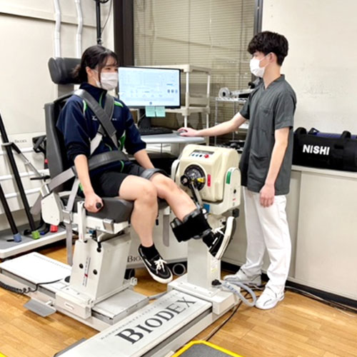 身体の痛みや運動機能の低下(筋力低下、関節可動域制限、運動麻痺、心肺機能障害など)に対して、患者様が自立した日常生活を送れるように支援を行っています。基本動作(寝返り、座る、立つ、歩く、階段昇降など)の改善を目指し、運動療法、物理療法、基本動作練習、呼吸機能訓練、心臓リハビリテーション、義肢装具の使用訓練などを実施しています。さらに、多用途筋機能評価運動装置、動作分析装置、呼吸循環分析装置などを備え、運動機能障害をより客観的かつ精密に評価しています。