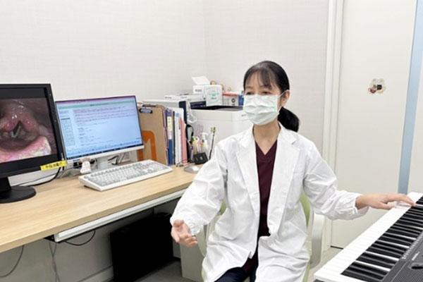 音声治療担当は、声が出しにくい方、かすれる方などへ、呼気や共鳴を上手く使って楽に声を出す発声指導を行っています。
