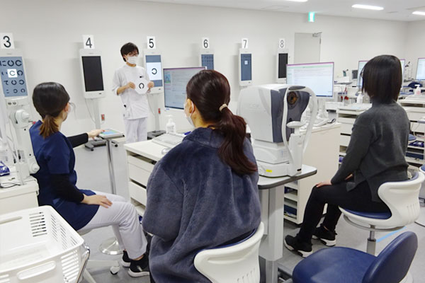 医師の指示のもと、視機能の検査・矯正訓練を行う医療技術職。健診業務や視機能が低下し日常生活が困難な者へのロービジョンケアも担い、その業務は多岐にわたる。視能訓練士の検査結果をもとに治療方針や診断が決定される。