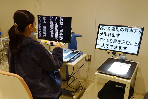 また、小児の弱視や斜視に対し、視力向上や両眼視機能の獲得を目的とした視機能検査や訓練なども担当しています。視機能が低下した患者さんに対しては、医学的所見をもとにした光学的視覚補助具の選定を主として、生活の質(Quality of Life)の改善を支援するロービジョンケアを行っています。